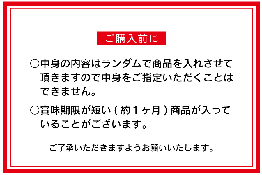 | 内容量 | 5,000円相当の商品が何が入っているかお楽しみなお得なセット! |