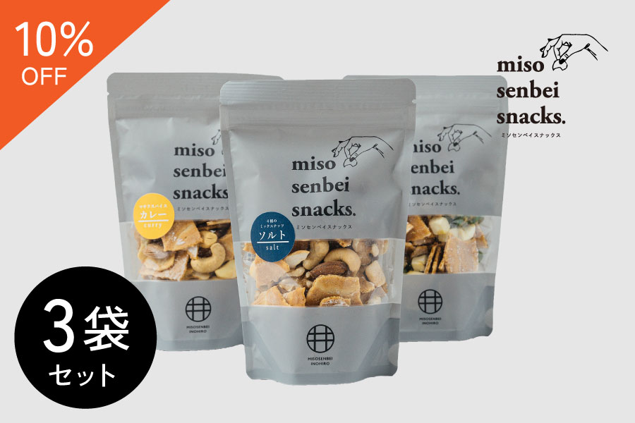 ミソセンベイスナックス全種類・3袋セット【10%OFF】